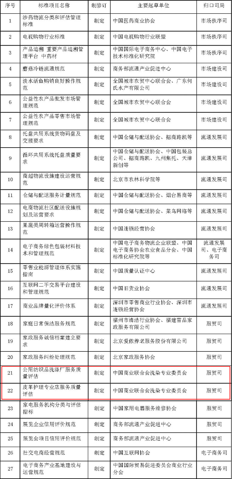 按照《流通行業標準制修訂流程管理規范(試行)》要求,在有關方面申報項目的基礎上,商務部確定了《2017年流通行業標準項目計劃》(以下簡稱《計劃》)。現就有關事項通知如下: