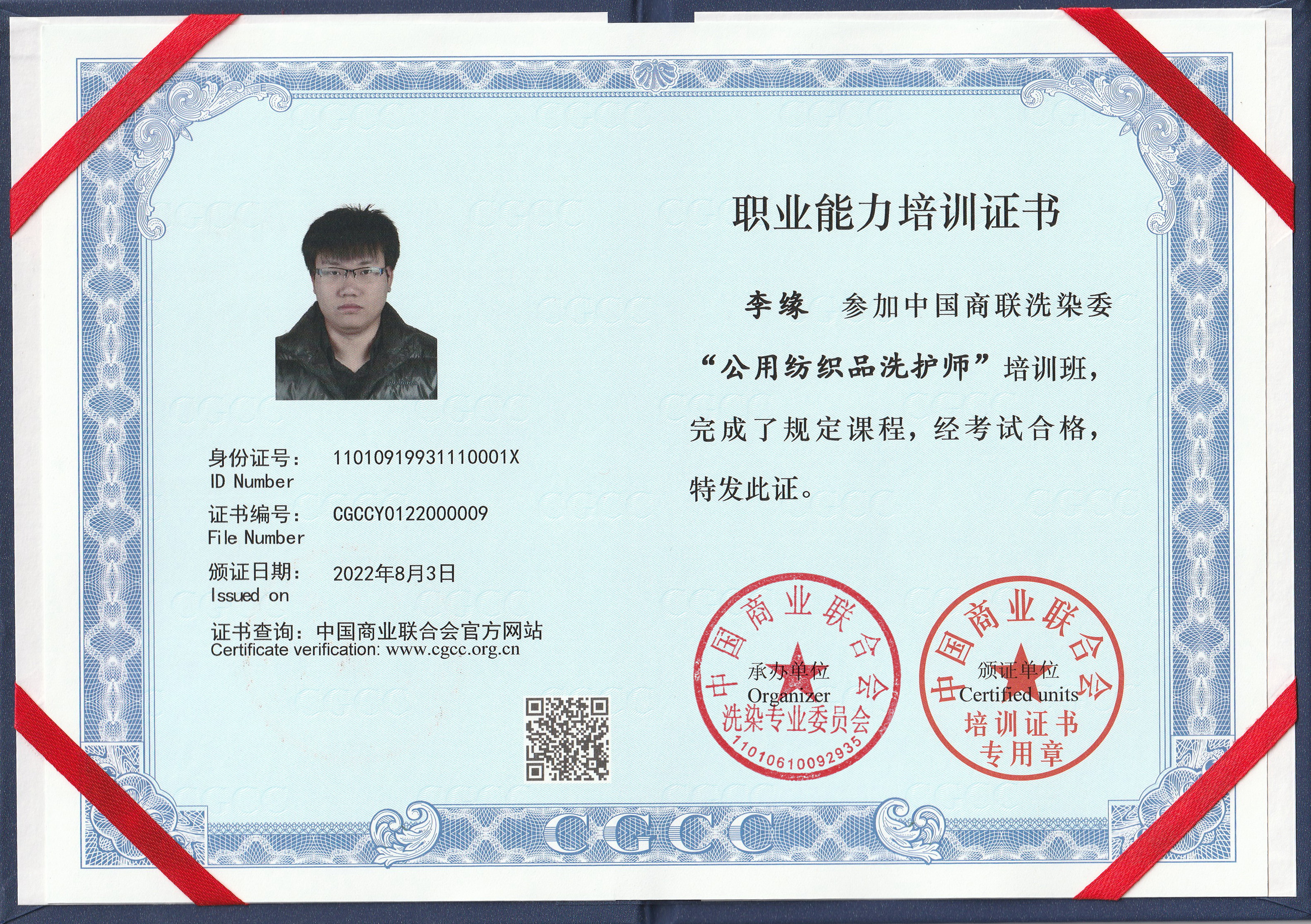 - • 首批洗染行業《公用紡織品洗護師》證書頒發